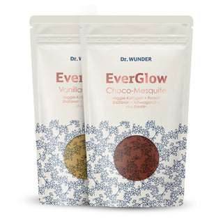 Dr. Wunder EverGlow® Superior-Kollagen ist ein Premium-Komplex, der vegetarisches Kollagen aus Eierschalenmembran mit sorgfältig ausgewählten Mikronährstoffen verbindet. Das Kollagen liefert die Typen I, V und X, die entscheidend sind für Hautstruktur, Bindegewebe, Elastizität, Gelenke und Knorpelaufbau.